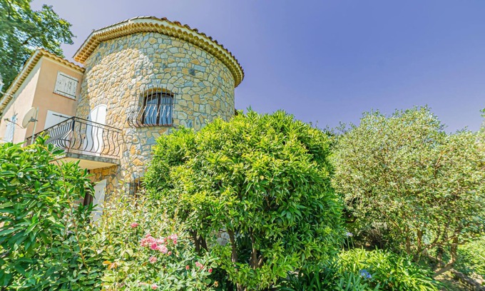 Nestled in the peaceful surroundings of a traditional villa, this charming flat is your window to breathtaking panoramas of the Gorges du Loup and the Prealps of Grasse. Embrace serenity in a space designed with a private entrance and a beautiful stone tower.