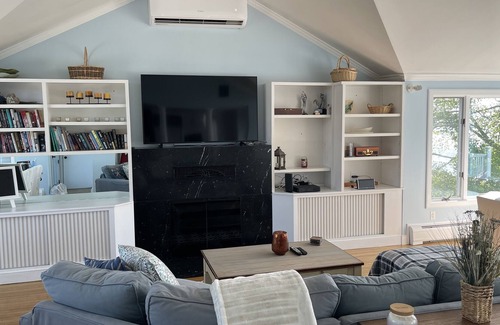 Amazing views with lots of windows, the house is up on stilts over the water. Wake up in the main bedroom to a gorgeous sunrise over the water, with a large deck stretching the length of the house. Five minutes from downtown Marion and all the amazing restaurants in the area. On a quiet side street with access to beach trails to walk on with serene views.