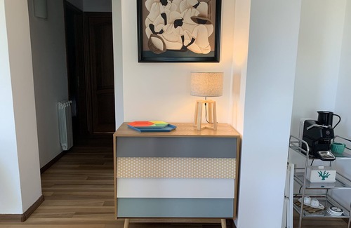On the upper floor, attic, with exposed beams, there is an air-conditioned room equipped with a double bed and a conversation area communicating with another room furnished with a single bed and children's furniture.