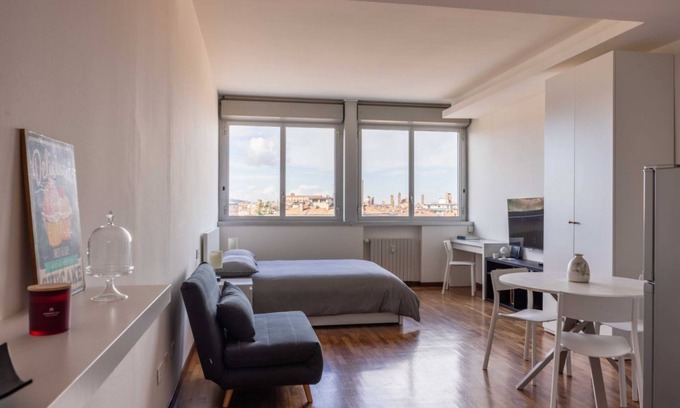 Welcome to the "Paolo Fabbri Apartment," a welcoming 42m2 studio apartment designed to offer you an unforgettable stay in the heart of Bologna. Perfect for couples, small groups or solo travellers, this apartment will give you a breathtaking view of the city's iconic towers, immersing you in its historic and fascinating atmosphere.