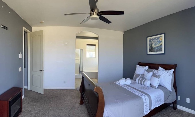 Hello 👋, and Welcome to your Sunrise Paradise Vacation Home. 4 bedrooms, 2 1/2 bathroom home, sleeps up-to 12 people. LOCATION LOCATION LOCATION ! Only two minute walking distance to the gates of the Empire Polo grounds, great location! free Wi-Fi, Smart TVs, and board games. Looking to stay close to the grounds, not walk very far , and have a good time for the weekend, this is the right spot! Lounge area, FIREPIT, water ⛲ fountains, propane BBQ and ambiance ..Included with your stay is Perimeter VIP ACCESS PASSES ...up to 4 total spaces ... The distance to VIP Parking area of Coachella Festival 2023 is incredible!! don’t miss your chance to staying close to the grounds and enjoying poolside mimosas in the morning.