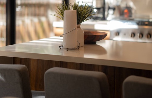 Soaked by the sun and ready to relax, head inside the interior of your stay where you'll discover an open-concept layout. Snuggle up with your loved ones on the soft sofa in the living room while watching your favorite shows. Or, play chef in the well-equipped kitchen amongst the stainless steel appliances and wooden cabinetry.