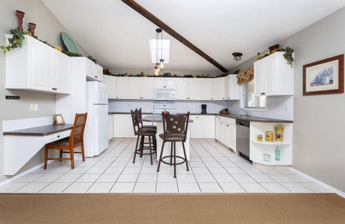 You will have the whole place to yourselves, with a fully equipped kitchen, 2 bedrooms (each with a queen bed), and 2 bathrooms. If needed, there are 2 single beds that can comfortably be set up in the living room (upon request). The living/dining room and kitchen are large and spacious, with views of the golf course and the coulees. There is a large screen Smart TV in the master bedroom and in the living room.