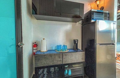 The primary bedroom boasts a spacious layout with a king-size bed and its own private terrace facing the paradise of Aguadilla Bay with stunning ocean views and calming décor, this room is designed for relaxation. The room is equipped with all new stainless-steel appliances, including a fridge, coffee maker, smart tv, and microwave inside the room.