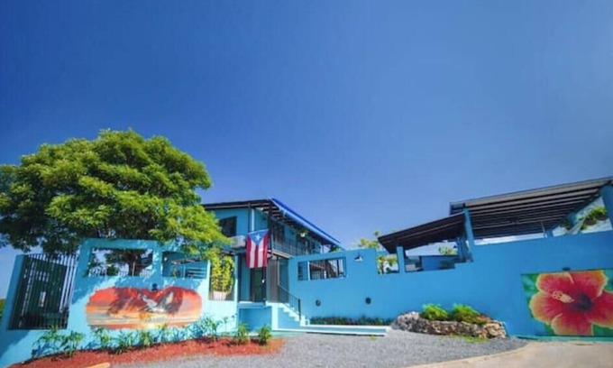 Perched on a cliff with panoramic views of Aguadilla Bay and its crystal-clear waters, our villa is a short walk to Crash Boat Beach, avoiding parking hassle. Enjoy nearby dining spots and access to popular beaches for snorkeling, SCUBA, fishing, and surfing. The villa offers cozy, air-conditioned bedrooms and spacious outdoor living and dining areas with stunning views. El Cucurucho is a secure gated villa perfect for families, couples, and friends, accommodating 4, 6, 8 or 12 people.