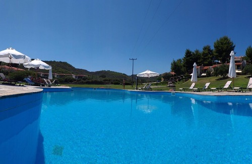 Swimming pool, proper for kids and adults. The view from the terrace is astonishing . Relaxing view of mountain Athos, and the wonderful sea. Surrounded by wonderful nature filled with pines and olives trees. Wonderful garden, filled with flowers and herbs. 5 minutes walking distance from the blue crystal clear sea and 15 min walking, inside beautiful nature, to Chanioti's village.