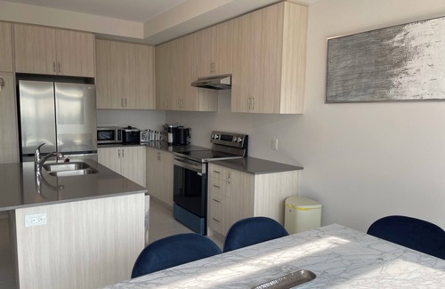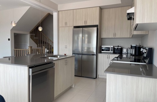 Welcome to our recently-built, extremely clean 4-bedroom detached house Located in one of the most prestigious, family-friendly neighborhoods in Cambridge. This house is just minutes away from wonderful parks, recreation trails, 401, and popular restaurants. 7 Minutes drive to Conestoga College Campus, 8 minutes drive to Cambridge Memorial Hospital, 2 minutes walk to Park. House equipped with 2 King Beds and 2 Queen Beds