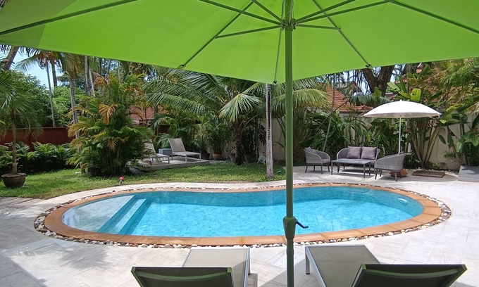 Very pleasant villa 3 suites with private pool, completely renovated in June 2024, in a magnificent tropical vegetation, very quiet. Small secure residence, close to all amenities. Management by professional staff, very smiling, helpful and attentive to the Customer. We can organize transfers airport, renting motorbike or scooter, excursions, massage at home, delivery of meals to the villa, ...
