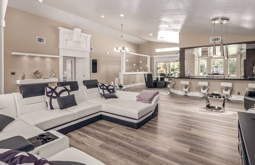 Gather the whole family and visit this unique basement home with lots of room for fun in the sun! Spend all day by the pool while you catch some rays or relax in the hot tub after a playing 18 holes at one of the many golf courses nearby. Later, head down to the basement for some competitive shuffle board, ping pong or foos ball and then cozy up on the comfy sofas while you watch a little Netflix late at night. Catch up on your sleep with beds for Kings and Queens! Plan a golf day at many of the Wonderfull courses that Scottsdale has to offer or take a short drive to Old Town Scottsdale and enjoy Giants Baseball, shopping and the amazing fantastic nightlife!The master bedroom had a King sized bed with its own flat screen TV as well as your own private bath tub and shower. The first floor guest bedrooms each have queen beds and both share a bathroom. You will enjoy the Main floor living room, TV and Dining area as well as the gourmet kitchen complete with a wine fridge and breakfast nook. Head downstairs to the basement where you will find a game room complete with its own flat screen TV, Ping Pong, Foosball and Shuffle board. Next door you can cozy up on the couch and watch a movie on the 65 inch Flat Screen, grab some drinks and make some popcorn at the wet bar. One bedroom downstairs has a King size bed and the other two guest rooms each have their own queen size bed. They all share a bathroom as well. Welcome to the Arizona sunshine! You will surely enjoy your vacation at Casa Buenavante.