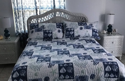 Beautiful one bedroom ,one bath, living room and kitchen. directly across the street from the beach just grab your flip-flops and go!!! or if you prefer to relax in our Resort pool. Living room has a pull-out couch. Walking distance to restaurants and bars! This condo is one of the largest in the complex with the 2 balconies!