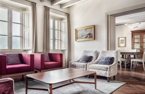 Suite 2. This beautiful, first floor suite is named after the Viscount Borromeo family, who owned the property in the 18th century. It sleeps seven guests and has views over both Lake Como and the gardens. There are two double bedrooms with en suite bathrooms and a twin room and a single room, which share the same bathroom. There is a splendid sitting room, a spacious kitchen and a dining room.