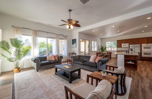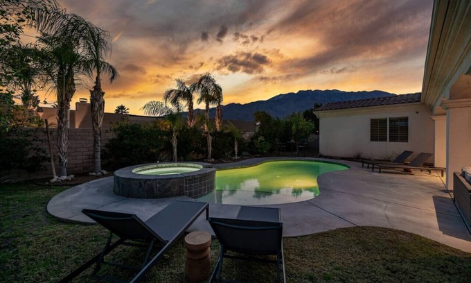 Welcome to Paradise Palms! Discover Palm Springs luxury at our spacious retreat, where an open kitchen and chic living area open to a private pool and spa. Just moments from downtown, this 4-bedroom oasis offers a stylish retreat with easy access to the vibrant city scene. Your perfect desert escape awaits – relaxation and sophistication meet just steps away from downtown`s attractions.