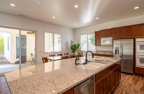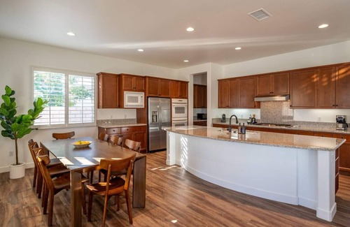 Step into luxury comfort at our stunning 4-bedroom, 3.5-bathroom home. The home also has an office that has been converted into a bonus room with a King bed in order to maximize occupancy. The interior boasts a harmonious blend of modern elegance and comfort. The open kitchen concept invites culinary creativity, while the spacious bedrooms offer retreats of relaxation. High ceilings amplify the sense of space, and the bonus room doubles as an additional bedroom. Newly decorated with tasteful touches, this home provides a sophisticated and inviting atmosphere, ensuring a delightful stay for everyone.