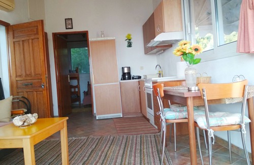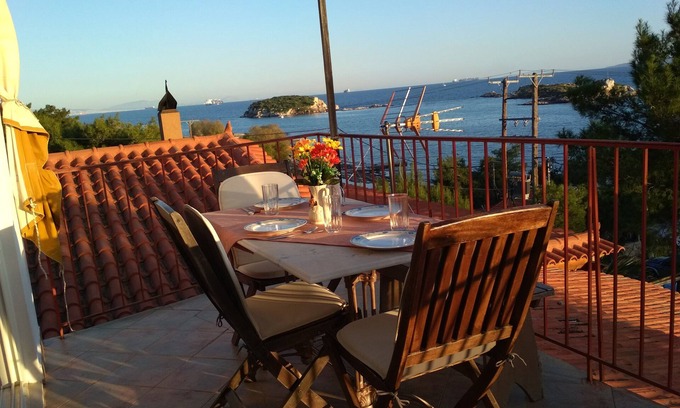 It is a lovely 40sqm house right on the sea in Peristeria Salamina. It is 20 minutes from the port of the island and 50 from Piraeus. It is built in a pine forest and at 10 meters from the entrance there is a beach where you can enjoy your swim in the crystal clear waters of the Saronic Gulf. The quiet and leafy location is magnificent with wonderful, organized beaches within 200 m. Nicholas, Patitiri. In 10 minutes walk you are in the cave of Euripides.