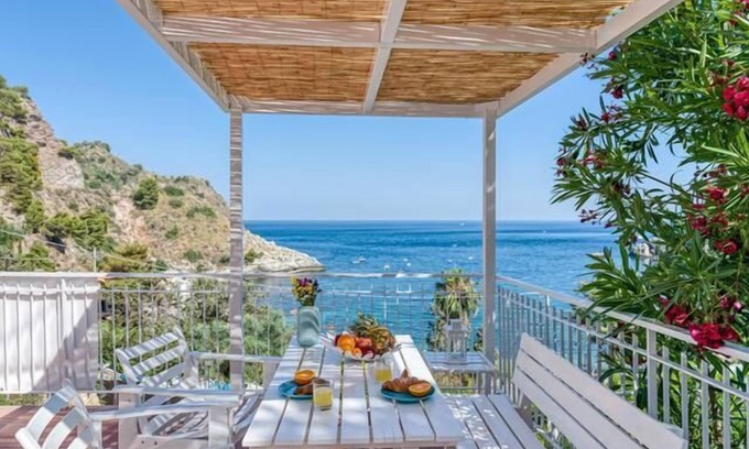 Paradisea Taormina with Garden front Sea is a perfect location to spend a romantic and unforgettable beach holiday in an enchanting position, in relaxation with a breathtaking view in the natural reserve of Isola Bella. The house is located a few steps from the beach of Isola Bella and can be reached by a private road that intersects directly at the end of the staircase that leads to the sea. The villa has a fantastic terrace equipped with outdoor furniture and a garden where you can relax reading a book surrounded by a sea breeze. The villa consists of a large terrace and a front garden, inside there is a living room / kitchen, the kitchen is equipped and complete with all the latest appliances, the bedroom also enjoys a magnificent view of the sea , and then to finish a large bathroom with shower. Outside: a small flight of terracotta steps, lined with bushes and fragrant rosemary and dotted with huge vases of Mediterranean-style flowers, leads to the entrance from a fenced private car park, with numerous parking spaces. Guests also have access from this area, through a secure gate, to a path that leads under a small railway bridge and directly to the beach. Trains rarely pass along the coastal railway. Inside: the villa is grouped together with 2 other lodgings which are disengaged from some wooden bulkheads, making rooms with the possibility of uniting them excluded and becoming a single unit is the ability to accommodate up to 7/8 guests. Leave the car parked in its secure point inside our complex enclosed by a secure gate, and wander from the apartment directly to the beach where umbrellas and chairs can be rented at the beach club and you can enjoy authentic Sicilian dishes and delicious freshly caught fish caught in one of the two restaurants. Explore the nature reserve of Isola Bella, accessible via a small sandy path, or travel by cable car (the station is 5 minutes walk from the apartment) to the charming center of Taormina, perched on the sea. The main street, Corso Umberto I, bordered by medieval buildings that now house shops, bars and restaurants, crosses the city center and beyond, there is a mass of winding streets and alleys to walk around. Outside of Taormina, Etna and the picturesque villages that flank the hillside offer a fantastic day. If you are keen on hiking and some gentle action, head to the rocky gorges of the Alcantara Gorge or the Nebrodi Mountains, a national park that boasts wonderful natural landscapes. For a taste of city life, head south along the coast to the cities of Catania and Acireale and, a little further away, Syracuse, with its surprising fusion of Greek, Byzantine, Norman and Baroque architecture.