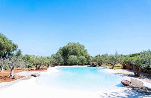 Olive Paradise with sea view; In the residence there are two villas, each consisting of two residential units. The terrace is divided by a partition into two halves. Thanks to the ventilated position, the temperature is pleasant in the summer months!. The residence is ideal for those who want to completely relax! Around the apartments there is a park of approximately 4500m² which is planted with olive with a beautiful and very particular swimming pool in the centre . The garden is a great way to walk under the trees and enjoy the tranquility. Children can play undisturbed.