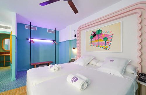 Located 1.2 mi from Ocean Beach Ibiza, Paradiso Ibiza Art Hotel - Adults Only offers two outdoor pool, an Art Gallery inside the property and free WiFi. There is free private parking on site. Featuring bright 70's-style furniture, Each room is named after an international contemporary artist and feature an original work of art donated by the artist. Each room comes with a Smeg fridge and Marshall speakers. They all include a balcony, air conditioning, and a private bathroom. Pool towels are provided. A buffet breakfast can be enjoyed in the breakfast area located by the pink pool. Paradiso Ibiza Art Hotel - Adults Only also features a tattoo studio and many more surprises. Ibiza Airport is 8.1 mi from the accommodations and a 25-minute drive will take you to Ibiza Town. When you book at this hotel you will have free access to the pool areas of the other Concept Hotel Group hotels.