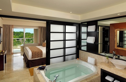 Paradisus Playa del Carmen – Riviera Maya - All Inclusive offers 488 air-conditioned accommodations, which are accessible via exterior corridors and feature DVD players and minibars. Beds feature down comforters and premium bedding. 50-inch flat-screen televisions come with cable channels. Bathrooms include bathtubs or showers with rainfall showerheads, slippers, designer toiletries, and complimentary toiletries.