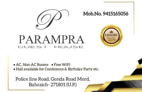Parampra Guest House is offering accommodations in Bahraich. Free Wifi is available to all guests, while some rooms here will provide you with a balcony. At the guest house, all units have a private bathroom with a shower. Guests at the guest house can enjoy a vegetarian breakfast. Shravasti Airport is 26 miles away.