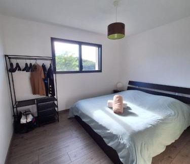 Providing a garden, Parenthèse contemporaine - Élégance et nature offers accommodations in Parigné-lʼÉvêque. The air-conditioned accommodation is 7.5 miles from Antarès, and guests can benefit from on-site private parking and complimentary Wifi. Le Mans Circuit is 8.7 miles away and 24 heures du Mans Golf Course is 7.1 miles from the vacation home. Offering a terrace with garden views, this vacation home also has a satellite flat-screen TV, a well-equipped kitchen with a dishwasher, an oven, and a microwave, as well as 1 bathroom with a a bath or shower and a hair dryer. The property has an outdoor dining area. There is an on-site coffee shop. Le Mans Exhibition Centre is 9 miles from the vacation home, while Le Mans Train Station is 9.3 miles away. Tours Loire Valley Airport is 42 miles from the property.
