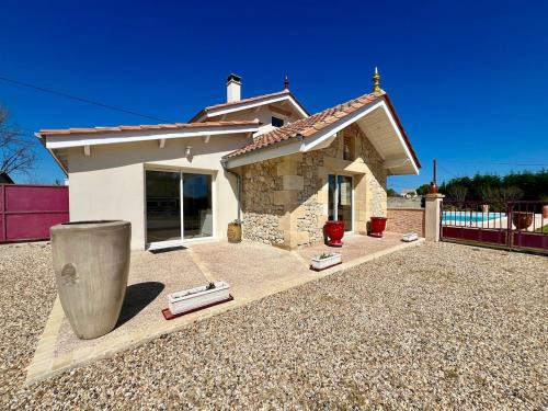 Parenthèse enchantée entre vignes et nature offers accommodations in Sainte-Christophe-de-Double, 13 miles from Lande Golf Course and 29 miles from Célestine Grotto. This property offers access to a terrace and free private parking. With free Wifi, this 1-bedroom vacation home features a flat-screen TV, a washing machine, and a fully equipped kitchen with a dishwasher and oven. Guests can take in the ambience of the surroundings from an outdoor dining area or keep warm by the fireplace on colder days. For added privacy, the accommodation features a private entrance. Guests can enjoy the outdoor swimming pool and garden at the vacation home. Bergerac Dordogne Périgord Airport is 41 miles from the property.