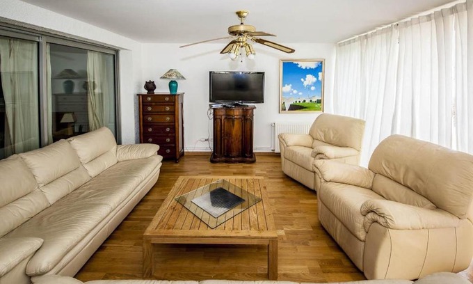 Media/TechnologyTV, Telephone, DVD-Player, Satellite channelsBathroomHair Dryer, Private Bathroom, TowelsKitchenRefrigerator, Microwave, Dishwasher, Washing machine, Kitchen, Electric kettle, Kitchenware, Dryer, Oven, Toaster, Coffee machine, Dining tableGeneralIroning facilities, Fan, HeatingLiving AreaSitting area, SofaViewView, City viewBedroomWardrobe or closet, Linens |