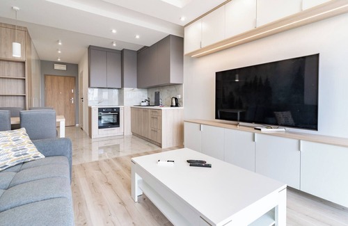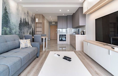Park Śląski Nature Studio is a stylishly and cozily furnished apartment that features a living room with a sofa bed and a kitchenette, a bathroom, and a balcony where guests can relax and enjoy their morning coffee or an evening glass of wine. Guests have access to various amenities, including free WiFi, a TV, a washing machine, an iron, a hairdryer, a dishwasher, an oven, an induction cooktop, a refrigerator with a freezer, and kitchen accessories. There is also a parking space available in the underground garage. Additionally, the apartment is equipped with air conditioning, providing exceptional comfort, especially during hot days.