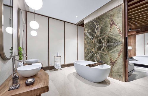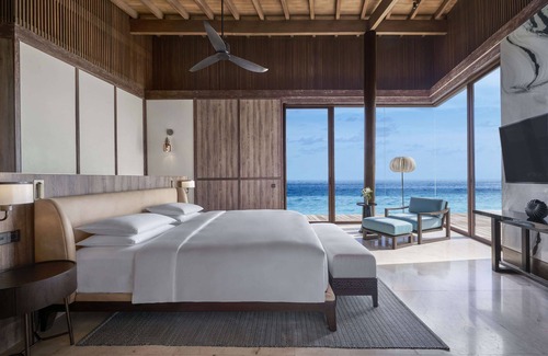 Park Hyatt Maldives Hadahaa offers 51 air-conditioned accommodations with iPads and DVD players. Rooms open to furnished patios. Beds feature premium bedding. Televisions come with premium cable channels. Guests can make use of the in-room espresso makers and minibars. Bathrooms include separate bathtubs and showers with deep soaking bathtubs and rainfall showerheads. Bathrooms are also outfitted with bathrobes, slippers, and designer toiletries.