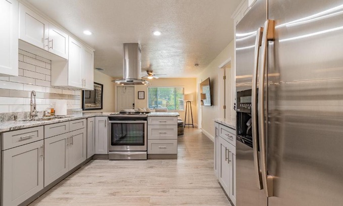 Park & Pool Across the Street and 9 Mins to Beach offers accommodations in St. Petersburg, 6.1 miles from John's Pass and 6.3 miles from John's Pass Village and Boardwalk. This property offers access to a patio and free private parking. The Pier is 8.6 miles away and The Dali' Museum is 9.2 miles from the vacation home. With free Wifi, this 4-bedroom vacation home offers a flat-screen TV, a washing machine, and a fully equipped kitchen with a dishwasher and oven. The air-conditioned unit at the property features a bath and a dressing room. The property has an outdoor dining area. Guests can also relax in the garden. Tropicana Field is 7.4 miles from the vacation home, while Chihuly Collection is 8.1 miles away. St. Pete-Clearwater International Airport is 11 miles from the property.
