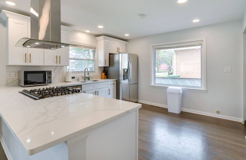 This 4-bedroom, 2-bathroom vacation rental in Park Ridge, IL, is the perfect launching pad for all your adventures around the Windy City! With this home's central location, you'll have easy access to local shopping and dining, the coast of Lake Michigan, and Downtown Chicago's sports and entertainment scene. When you aren’t out exploring, the house is complete with cozy comforts like an open-concept living room and Smart TVs for your group to enjoy some downtime.