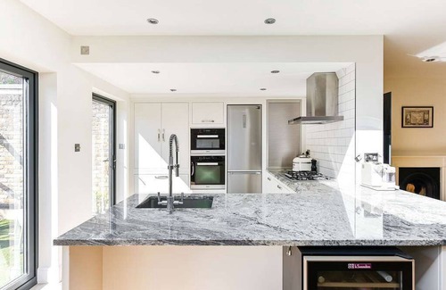 The ground level comprises a large comfortable living and dining room, which adjoins the bright conservatory kitchen and leads onto an outdoor private patio and garden. All three bedrooms are located on the first floor of the home. The master suite has a king-size (5ft wide) bed and en-suite bathroom with a separate bath and shower. The second room has a single bed and a bunk bed, the third with a single bed. Both rooms are serviced by a bathroom with a bath and shower (combined). There is also an additional WC/cloakroom.The house is accessed at street level and is set over two floors (with stairs between them).
