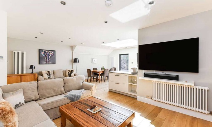 This home is situated on a quiet residential lane surrounded by period houses, with excellent access to all that London has to offer. 100 yards from useful amenities: a corner/grocery shop, a great brunch café, public swimming pool and gym, a dry cleaner, hairdressers, beauty salon, florist, café, Italian restaurant and barber. Walking distance to the River Thames for beautiful walks and rides and a playground (Leader's Gardens). Close to Richmond Park for walking and bike riding. Well located for the excellent shops, restaurants and transport links with numerous bus routes. East Putney (District Line) is the closest underground station and the closest mainline station is Putney (Waterloo) situated on Putney High Street.