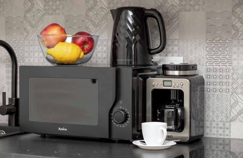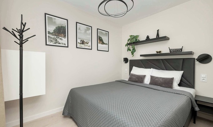 A comfortable apartment designed for families wishing to spend unforgettable moments by the sea. The functional space of 32 m² is perfectly suited for up to four people. From the moment you step inside, a cozy atmosphere makes your stay a true pleasure. The spacious living room features a comfortable sofa bed that transforms into a cozy bed for two at night. Evenings can be spent watching favorite movies on the 50-inch Smart TV. Air conditioning provides pleasant coolness on summer days, while fast Wi-Fi allows you to stay in touch with loved ones and plan your next activities. The living room opens onto a balcony with comfortable furniture, ideal for enjoying your morning coffee or relaxing after an eventful day. The kitchenette is designed with family convenience in mind. Guests have access to an induction cooktop, fridge with freezer, dishwasher, toaster, and electric kettle. For coffee lovers, there is a drip coffee maker with a grinder. Meals can be comfortably enjoyed at the dining table. In the separate bedroom, a comfortable king-size bed ensures a peaceful night's sleep. The bathroom features a modern shower, a hairdryer, and a washing machine—especially useful during longer stays with children. For added convenience, there is also a drying rack, an iron, and an ironing board. Safety is a priority, which is why the apartment is equipped with a carbon monoxide and smoke detector. Guests also have access to a covered outdoor parking space. An additional advantage is access to a gym and a playroom for children, which will surely make the stay more enjoyable for the youngest guests.