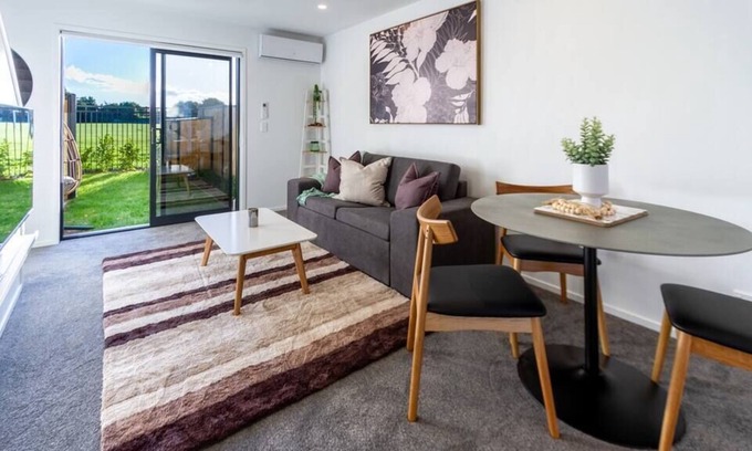 Newly built 2 Storey 1 bedroom 1 bathroom complete with private courtyard facing Middleton Park and enjoying the views right from the comfort of the bedroom through a Juliette balcony. Complete with King bed, Office/Study Nook, Free carparking space with EV charger and fully equipped kitchen - this home away from home is the perfect escape. Comfortably accommodating up to 3 guests with the use of the sofa bed in the living area. Come enjoy Christchurch whilst also having a peaceful park setting. Ground floor has the kitchen, living and dining area flowing to the private, fully fenced courtyard overlooking Middleton Park. Upstairs (1st floor) has the bedroom with King Bed and Full bathroom with Tiled shower, Bidet and vanity. Canterbury Linen Service who services local 5 Star Hotels provide our sheets and towels. You can sink into the luxury of a professionally laundered bed knowing it's a 5-star hotel clean. The real beauty of our home lies in its proximity to the 5-hectare park that our property overlooks. It's the perfect place for kids to run around and explore, and for adults to relax and unwind. Take a stroll through the park's walking trails, pack a picnic, or simply bask in the sun while taking in the stunning scenery. As soon as you enter our apartment, you'll notice the modern decor and attention to detail that we've put into every aspect of the space. The living room is spacious and comfortable, with a large sofa, smart TV, and plenty of natural light. The kitchen is fully equipped with high-quality appliances, including a dishwasher, microwave, and Oven. We also provide basic cooking supplies such as oil, salt, and pepper, so you can prepare your meals with ease if you wish to cook throughout your stay.