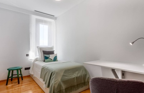 Apartment for three people in one of the most exclusive streets of the capital; Paseo de la Habana. It has a spacious and bright living-dining room, separate kitchen, double bedroom with en suite bathroom, single bedroom, a full bathroom and a great terrace with unbeatable views of Madrid.