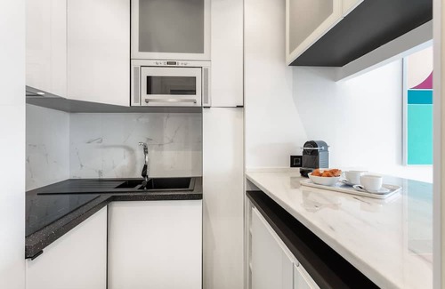 In the heart of Madrid's Art Triangle, known for encompassing three of the best museums in the world, the Prado Museum, the Thyssen-Bornemisza Museum and the Reina Sofia Museum, is this bright and modern apartment perfect for the stay of two people.