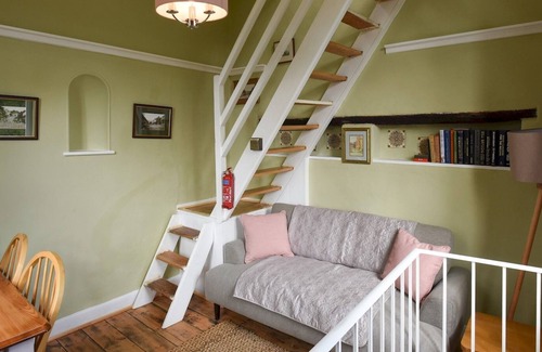 Located on the ground floor is the modern kitchen with cooker, microwave and fridge. There is also a shower room with toilet. Please note there are steep, narrow-tread stairs to the first floor cozy living room with dining table and TV. Continue up to the second floor where you will find the bedroom with a double bed, clothes storage and great countryside views. Access to roof is via a loft hatch, and pull down stairs and well worth it! On the roof terrace there is a bistro set where you can enjoy 360 degree panoramic views of the village and country side well into the evening with romantic fairy lights. There is electric heating throughout and country views from every window.