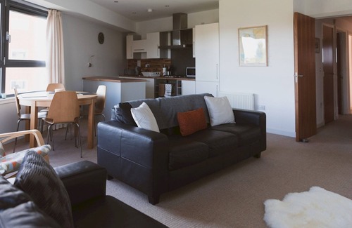 A lovely flat in trendy modern area at the Harbor with excellent north views over Glasgow City.