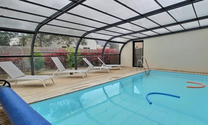 Your two-level vacation rental includes: On the ground floor: Living room with fitted kitchen, utility room with washing machine, shower room (walk-in shower and toilet). Upstairs: 1 bedroom (1 king-size bed), 1 bedroom (3 single beds), separate toilet. Outside: 12 m² terrace, 35 m² private garden Shared by the 4 cottages: indoor heated swimming pool (3.50 m x 7.00 m x 1.20 m) from Easter to All Saints' Day. Poolside restrooms (shower and toilet). 61 m² pool terrace currently being developed. Shared parking area, secured by a gate with a digital code. On the heights of Erquy, just 2 km from the Cap, classified as a Grand Site de France, this property includes 4 spacious and bright gîtes, arranged around a swimming pool, each with a private garden, not overlooked. Each gîte has been beautifully designed, so that you feel at home. This is a truly privileged location for all those who wish to discover the splendid wild beaches of Guen (1.2 km), Portuais and Lourtuais that you can even admire by following the GR 34 which overlooks them. Magnificent panoramas to enjoy, whatever the season! If you like hiking, this is the perfect address to book because the GR 34 is very close, and every year, in May, the Trail de Landes et Bruyères brings together thousands of runners... To reach the city center, just go down the rue des plages Sauvages and you are there: don't miss the Saturday morning market! 4 km from the Port, lined with bars and restaurants, 12 km from Val André.