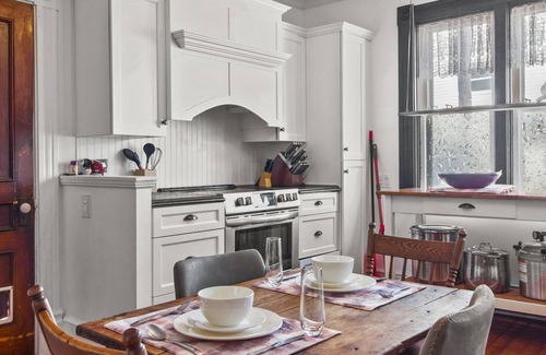 Two full bathrooms cater to your convenience and relaxation needs. One bathroom is equipped with a modern shower, and the other features a vintage clawfoot bathtub, perfect for soaking away your cares in a bubble bath after a day of adventure.
