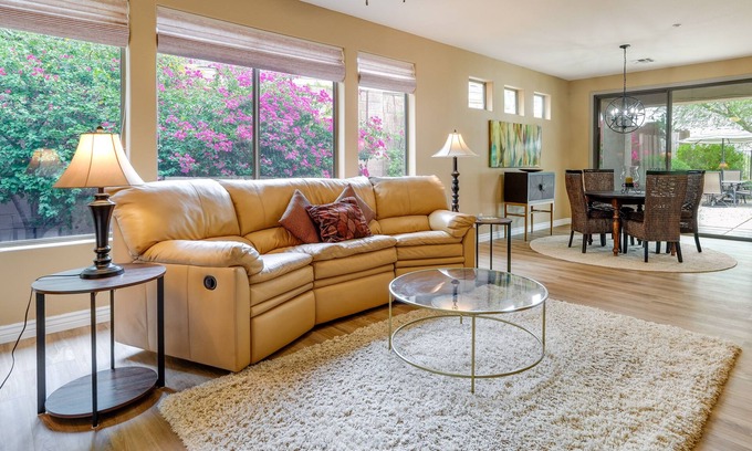 Are you looking for your next Arizona getaway? Look no further than this 2-bedroom, 2-bathroom Anthem vacation rental! The property is located in a gated community and offers a spacious backyard with outdoor dining and golf course views. Wanting to explore? Practice your swing at a nearby fairway, catch a spring training game, or explore the historic streets of Old Town Scottsdale. Once the sun starts to dip, head into Phoenix for some eats, or enjoy an al fresco dining experience on the patio!