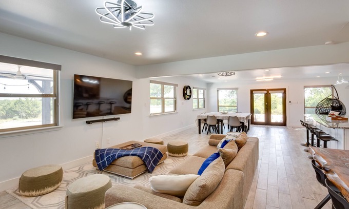Spend your next fun Texas retreat staying in style when you book this incredible McKinney vacation rental! Located on a beautiful expansive plot of land, this 6-bedroom, 4-bath ranch house is perfect for comfortably accommodating and entertaining everyone during your stay. When you’re not out exploring exciting nearby sights like Historic Downtown McKinney or Adriatica Village, be sure to take advantage of this home’s outdoor kitchen and dining setup, or head inside for a game of foosball!