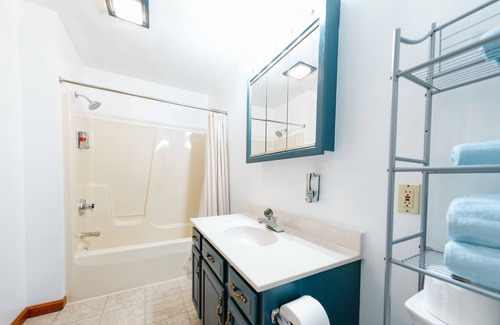 The three bedrooms can sleep up to 7 guests. The master is complete with an ensuite bathroom while the additional bathroom is shared with the two smaller bedrooms. A pack’n’play and queen sized air mattress are available upon request.