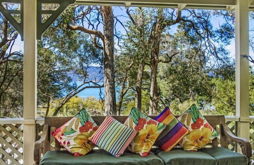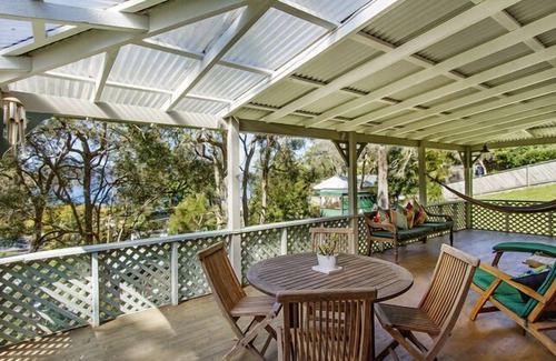 Romantic character filled holiday retreat with views over Patonga and Broken Bay is ideal for a couple or a family. Bright, fresh with open fire, air-conditioning, full kitchen, large entertaining deck for alfresco dining and hammocks included for relaxing. Secluded, private but only 2 minute walk to "The Boat House Hotel" and the beach and National Park with amazing walks on the door step.