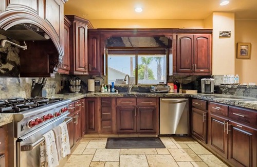 Paulie's Palace is truly a Must Stay! With every Amenity! An AMAZING CHEFS KITCHEN to complement the AMAZING POOL AREA. The whole home is very LUXE inside and out. Not to mention the gorgeous interior design. No detail was skipped. Top of the line furniture all through the home. Mattress as well. Not to mention there are TVs in every room and even the bathrooms and back yard patio. Indoor & outdoor fire place. Also a top of the line outdoor BBQ. Photos and reviews don't lie! Been a super host on Airbnb for 2 years now trying out this site as well