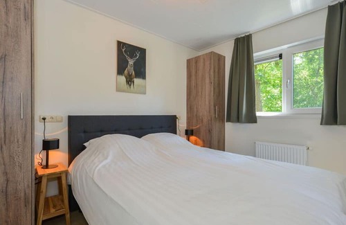 Inside, you can go well in the living room with an open kitchen, equipped with dishwasher, combimicrowave, Philips filter coffee machine and Philips kettle. The house has three bedrooms: one with a box spring double bed, one with two box spring bed beds and one with bunk beds. Modern bathroom and separate toilet. The holiday home is suitable for 6 people. As soon as the weather permits, you can stay on the private terrace with garden furniture and a large parasol outdoors. The garden around the pavilion is extensive and has a nice natural vegetation. The singing of many birds completes the vacation picture! On our website you can discover the many options in and around the park to spend a wonderful vacation that meets your individual wishes. When can we greet you in the Drentheland park and a cozy and pleasant stay on the edge of the NA