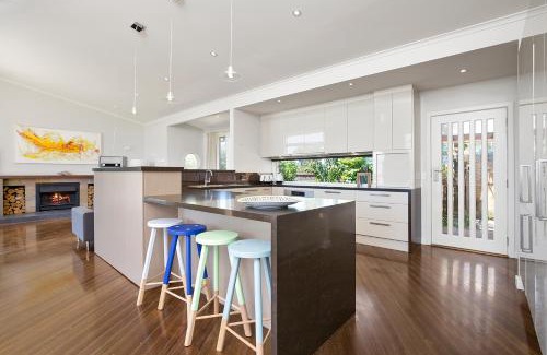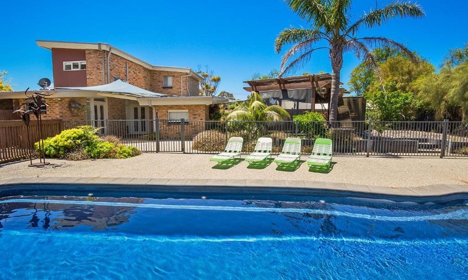 Paw Up Villa - entertainer delight is located in Rye, just a 19-minute walk from Rye Beach and 3.5 miles from Blairgowrie Marina. This property offers a private pool, free Wifi, and free private parking. Outdoor seating is also available at the villa. Leading onto a balcony with pool views, the spacious air-conditioned villa consists of 5 bedrooms. Providing a terrace with sea views, this villa also provides guests with a satellite flat-screen TV, a well-equipped kitchen with a dishwasher, an oven, and a microwave, as well as 4 bathrooms with a walk-in shower and a hair dryer. This villa is allergy-free and non-smoking. During warmer months, you can make use of the barbecue facilities and eat on the private patio. Paw Up Villa - entertainer delight has a garden for your convenience, along with a private beach area. Moonah Links Golf Club is 4.7 miles from the accommodation, while Rosebud Country Club is 7.3 miles away. Essendon Fields Airport is 66 miles from the property.