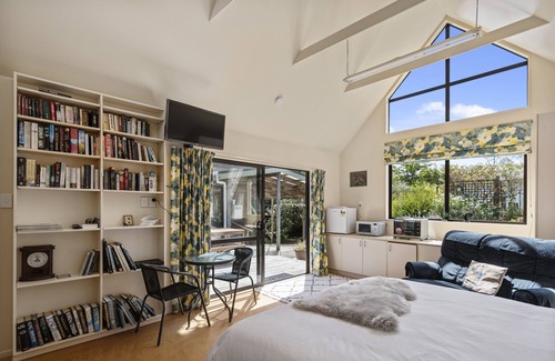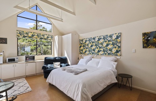 An entire wing is yours to enjoy. Brand new bathroom with an over-sized shower. The room consists of a super king bed with luxurious linen. A two seater couch, a table and chair, microwave, a benchtop oven and a mini fridge.