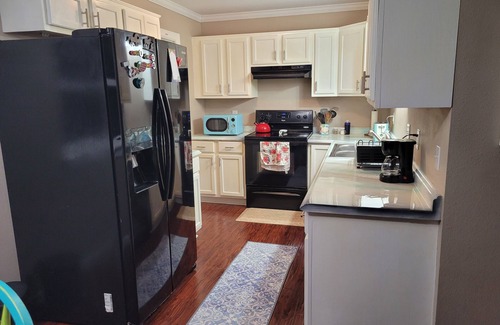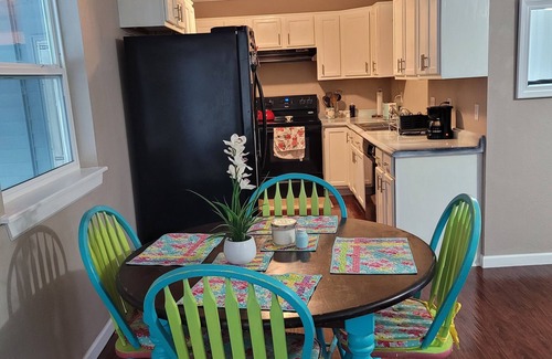 A intimate 2 bedroom/2bath house close to Bentonville. Located in a safe and quiet neighborhood. We are a walk or ride away from the back 40 bike trails and have several small lake access with kayak for use in the Spring and summer months. Fully furnished and internet provided. Large deck in the back yard and a fully fenced in yard. There is a private room off the kitchen that is off limits. Please no smoking and no inside pets. Many people rent this space and some have severe pet allergies.