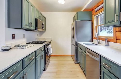 Unwind at this peaceful and secluded basecamp for all Grand County has to offer. Tucked in the forest next to a creek, this cozy 3-bedroom, 2-bath Tabernash cabin offers a private hot tub and endless outdoor activities. Ski Winter Park or Granby Ranch, mountain bike the Phases, explore Devil's Thumb Ranch, Meadow Creek Reservoir, and the High Lonesome Trail. Afterward, look at the stars in the hot tub or read a book by the wood-burning stove.